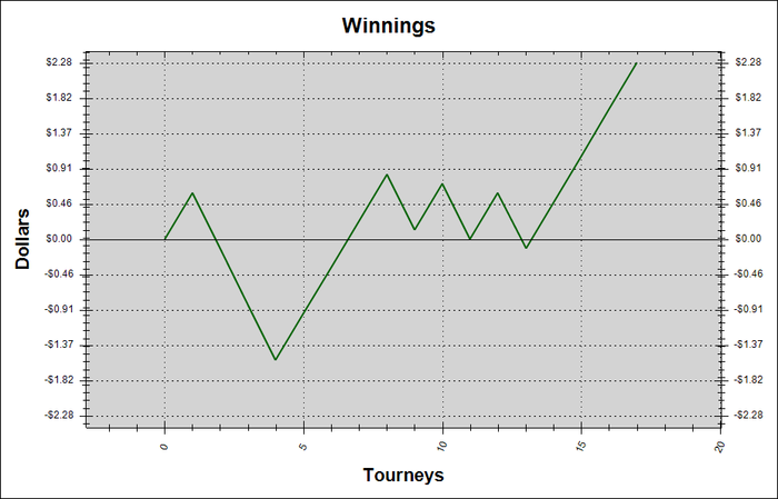 Сегодня особо игра не сложилась, сыграл только 6 турниров 0,25 Итог:+1,9$
