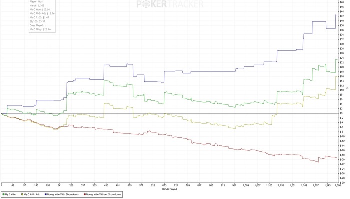 А я вчера поиграл всего 500 раздач в +10 и 20 раздач на пло25 в +35.