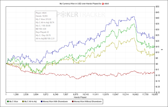 PokerStars - $0.05 NL - Holdem - 7 playersHand converted by PokerTracker 4SB: 112 BB (VPIP: 33.33, PFR: 27.78, 3Bet Preflop: 0.00, Hands: 18)
