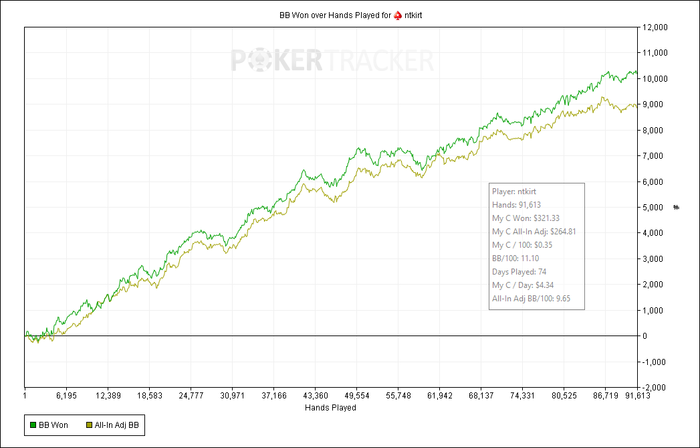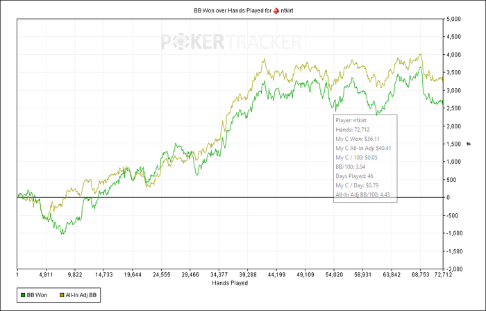 MP: 75.4 BB (VPIP: 45.65, PFR: 10.87, 3Bet Preflop: 0.00, Hands: 46)