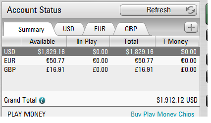 На данный момент в активе: 63.23 евро - на Titan poker 18.26 паундов - на Winner poker 75евро в виде турнирного билета на Titan poker.
