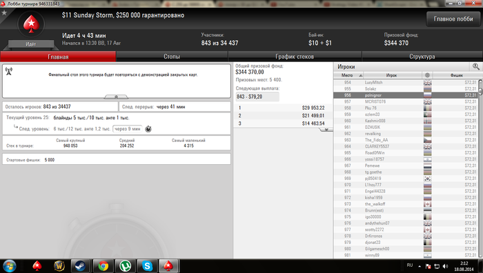 Перед началом марафона решил играть 0.50$ sng turbo (45 90 180), но так как седня воскресенье, решил рискнуть и сыграть несколько мтт на 80% бра, остявляя 5$ на раскрутку. Итог: