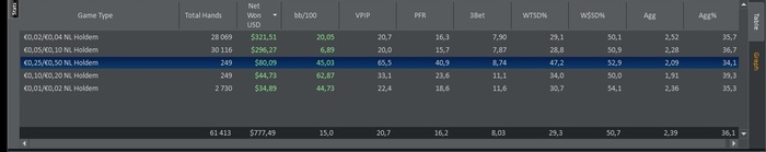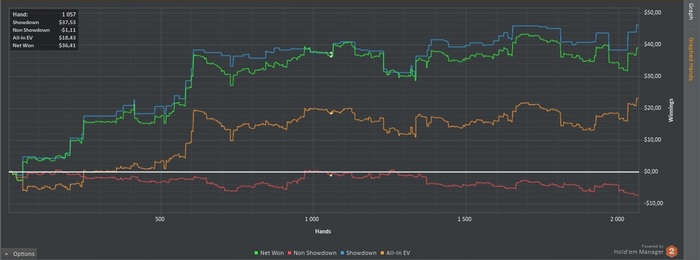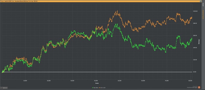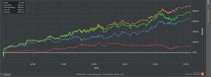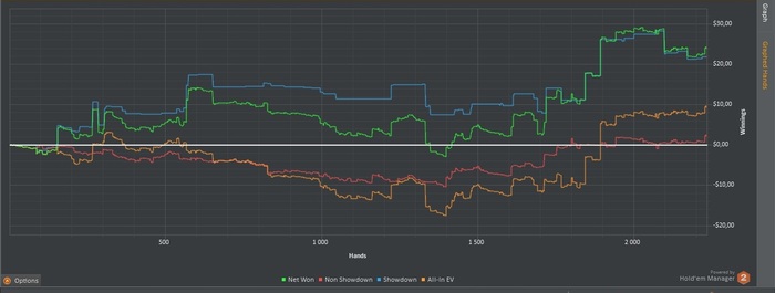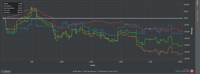 но как то все это уныло. Я ожидал от себя большего) Играть по 10к рук в день я могу. Но грустно от недобора и не понятно, что с ним делать.
