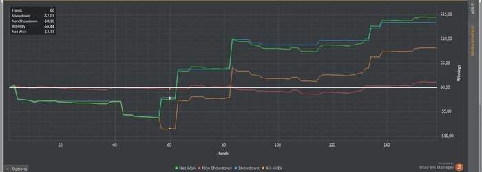 А сегодня мне пришла в голову мысль, что у меня не может быть перебора по ЕВ. Я же играю тайтово, если не сказать нитово и выставляюсь в подавляющем большинстве случаев сверху. Соответственно у меня нет возможности кого то переехать. Ну может в редких случаях КК в АА.