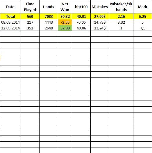 Привет всем, читаю книжку "Покер: игры разума", посоветовали вести блог, фиксировать результаты, поэтому начну постить для себя, хотя делаю это впервые и тревожно что кто-то будет следить за моей неадекватной игрой, хотя кому я нужен.