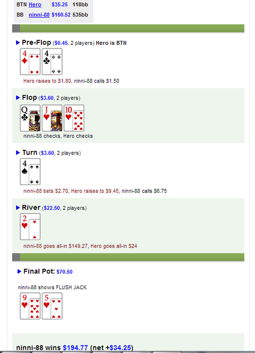 Более менее не криминален флоп, а вот для 4-бета и рейза на терне уже нужны аргументы. Они были?
