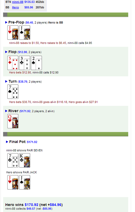 С другой стороны это нивелируется нашей пассивной игрой на флопе, т.к. это, как правило, провоцирует фишей на блеф.