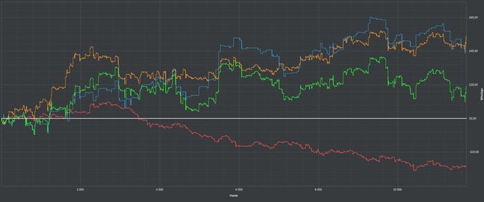 Конечно же во всём виноват ГСЧ ))) Только самый ленивый не поймал свой сет и 2пары в 3 и 4 бет банках против моей оверпары. КК почти всегда имели А на флопе и ,ясен пень, у оппа А всегда был. В общем если у оппа что то есть то доедет или срастётся с вероятностью 99,9, мне же нихрена! Конечно же пытался блефовать но практически всегда как слепой котёнок натыкался на железобетон.