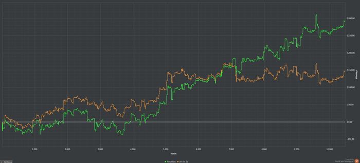 Ближайшие планы продолжить нл25. И даунменеджмент ))) следующий. Останется 300 иду на нл10. 150 нл5. 50 нл2(((. Ну и минус 200 в общем зачёте и свернуть лавочку тоже никто не отменял.