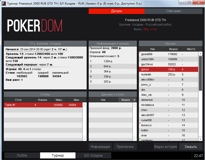 Раз-два в неделю запускаю по парочке МТТ. Структура турниров для меня очень подходит. Ребаи в этом руме полюбились отдельно. Последние недели вылетаю вне денег, но наигрыш слишком мал. К сожалению, очень не хватает времени на игру.