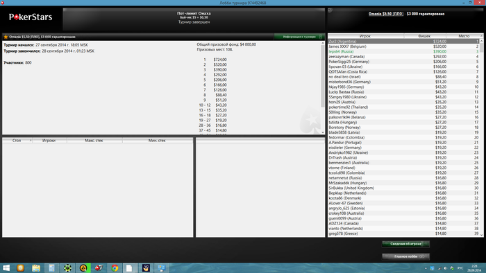CasualCase @ 27.9.2014 Неплохой врыв. На ВКУПах исключительно омаху катал? Чего кстати ХайЛо не добавишь? Там фатально-фишовое поле. А, хотя про лимиты выше 10, не уверен.