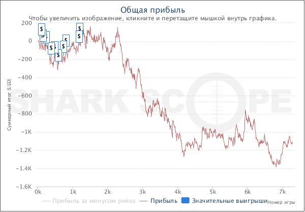 Кошмарная сессия! Точнее, продолжение вчерашнего залива, в какой-то момент шел минус 80. Покер наверное никогда не перестанет меня удивлять своим изощренным чувством поиздеваться. Дело даже не в конкретной раздаче, а в общем положении, например, когда надо пушить, это плюсово, и опять впаялся в натс, или на финалке, один мусор сдают, и даже зарестилить не с чем агро рега, стек твой тает, а ты ничего не можешь сделать. Грустно. И это пройдет. Пару первых мест вывели сессию в плюс, и все не так уж плохо на сегодняшний день.