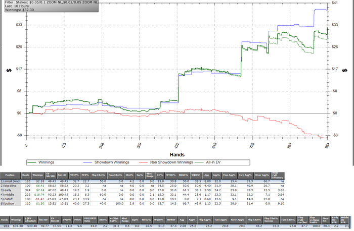 MP2: $31.35 - VPIP: 13, PFR: 8, 3B: 3, AF: 2.6, Hands: 4507