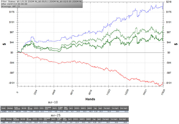 MP2: $25.00 - VPIP: 14, PFR: 11, 3B: 5, AF: 2.1, Hands: 5703