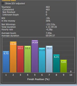 За эту осень переиграл почти все дисциплины по NL Холдему и даже пробовал играть кэш PLO 10 и PLO 25,пока не узнал,что бить рейк на этих лимитах почти невозможно... и,в конце концов. остановился на 1-столовых SnG turbo с баином 7$ 9max.