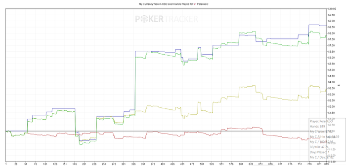 SB: 100 BB (VPIP: 12.09, PFR: 4.40, 3Bet Preflop: 0.00, Hands: 92)