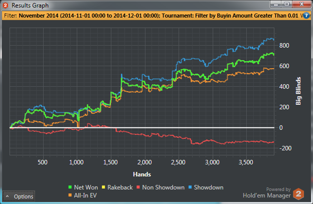 + подключаю нетурбовые мттшки лимитов $1.1-$8.8 и ребайники $1.1-$3.3. Их нужно отыграть 2500 штук с винрейтом 10+ evbb/100. Это первая цель. По ROI целей ставить не буду т.к. дистанция маловата.