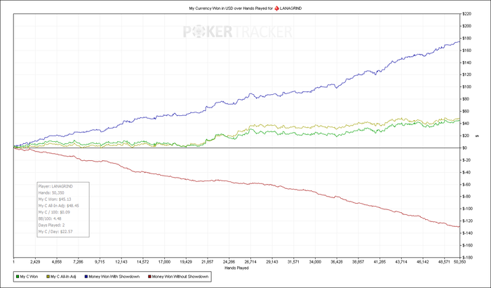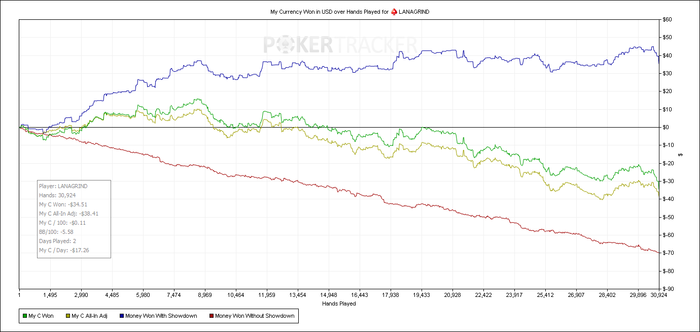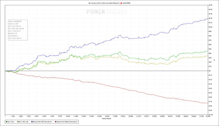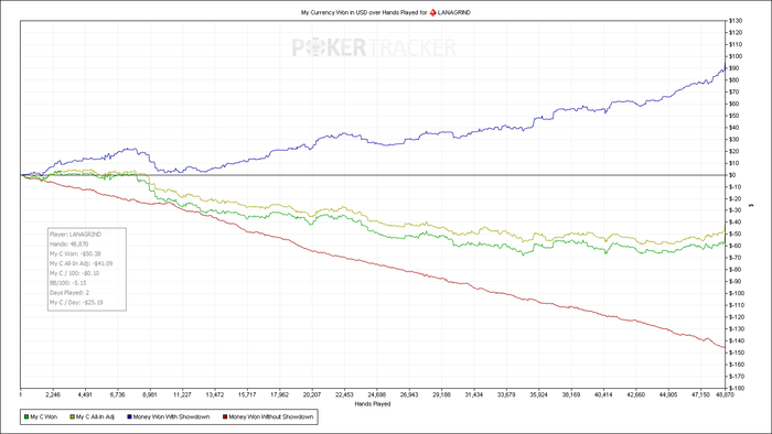 Все хуже и хуже идет катка.... - 60би лечу..... ПТ не все руки записал с этой сессии на нем не показаны еще примерно 15к рук и на -20$ больше по факту просадка