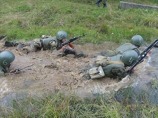 Прапорщик Бушмакин, имел максимальной прокачанный левел как задрочить спецназёра за 2 часа чтоб последний отказывался жить)) Вот звучит команда "Бегом марш" и мы начинаем наматывать круги вокруг столовой, при этом то ходя на гусе, то команда "газы" в противогазе (для тех кто не служил, бег в противогазе это ад на земле, одышка ниибаца, а кислорода нет, дышать нечем, очки потеют, не видно ничего) Духанске не привыкшие к берцам (воиская обувь) ножки, тут же разбиваются в дрись кровавыми мозолями, которые не заживают никогда и доставляют дикие муки при передвижении, так отжимаяся на кулочках на асфальте, что тут же разбивает твои костяшки в такой же дрись как и на ногах при этом гноятся и руки опухают, куча ещё всяких вводных на подобии выпрыгиваний "джамбо" поднос ног к груди, перетаскиванием братишек, короче овер тысяча всяких вводных от которых ты просто подыхаешь, ощущать такие "муки" мне не понравилось, и сдох со ещё на пре флопе)) Все эти "издевательства" проходили в перерывах между нарезаниями кругов вокруг столовой (и эта вся хуйня происходит когда на бошку печет +30) Один круг вокруг столовой это 500 метров, и вот пробежав таких кругов штучек 5, тело, ноги, руки и мозг нашего хиро (т.е. МЕНЯ) выдал синий экран смерти, и я упал))))))))))) Еще наверно кружок меня потаскали на руках братишки, после чего я пробежал еще кружочек сам, и отключился автоматически))))) Меня как самого чалого, слабого и не способного отправили в роту, (придя туда я понял, лучшеб я нашёл дополнительное питание, ибо за то что я не вывес я тут же начал огребать лютых пиздюлей от дедушек что стояли в наряде) После минут 20-30 опиздюливания, начали затаскивать других духов, кто обблёваный, кто в обмараке, короче кто как, но слава Богу живыми, хотя охарактеризовать наше состояние как "живые" было сложно)))