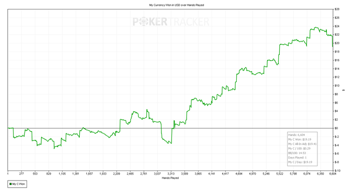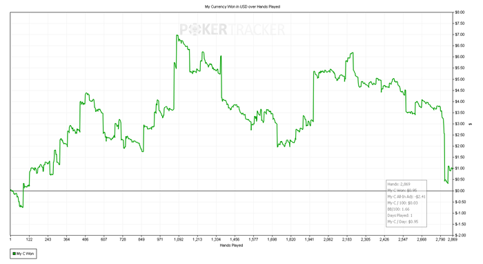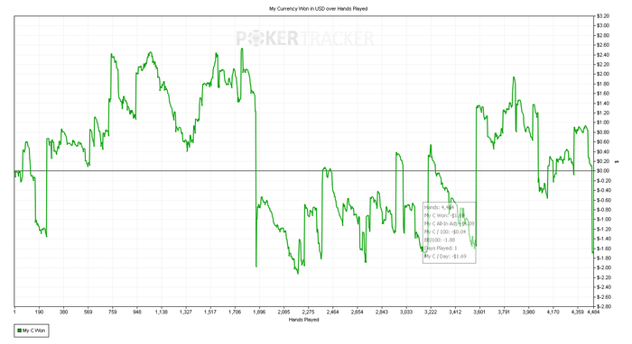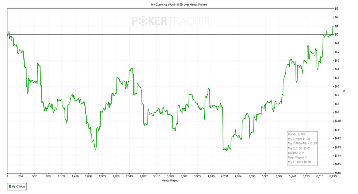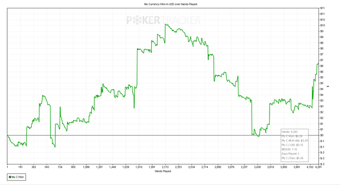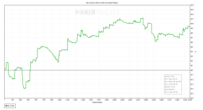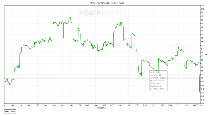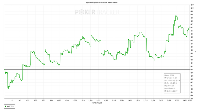 Подарил сегодня кучу фишек в простейших ситуациях. Начинаю подозревать, что это связанно с усталостью, потому как часто залив профита приходиться на вторую часть сессии. Ну, и бет битили меня сегодня славно.