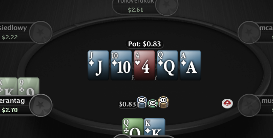 Очень неприятная раздача. Не понимаю почему старс не предоставили мне возможность сделать еще один рейз на префлопе? Было доступно только действие колл два цента и фолд.
