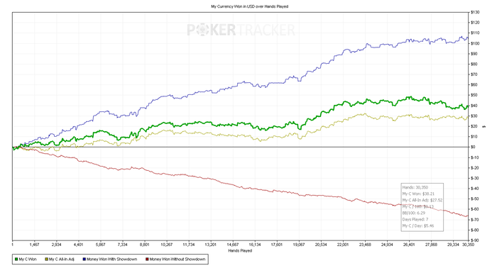 Решил оставить попытки держать красную хотя бы в нуле и играть на синюю, так сказать, только велью покер. Интересно какой лузрейт бб/100 красной у игроков синей линии считается нормой в шмаксах?