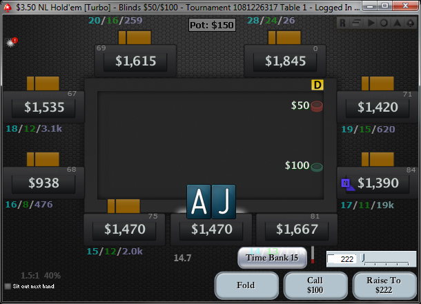 У короткого с 16 на 8 тут рестил минимум с 99+ AJs+, и у нас не больше 35% против него.