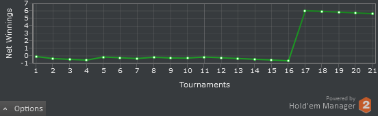 20 турниров это очень мало, играя так мало мы надеемся исключительно на удачу, хотя сама по себе цель выполнима более чем реально, даже если мы хреновенко играем. Целься на 80+ турниров минимум в день и всё получится.