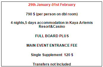 А теперь о самом РЫБНОМ месте. В казино Kaya Artemis Resort за покерными столами практически нет профессионалов! Менеджмент бережно хранит веселых игроков, в основном из ближневосточных стран от регуляров. Но на время серии все будут в равных условиях! Во время предновогодних International Poker cash game самым популярными блайндами были 10-20. Но и столы с блайндами 25-50 пракически не закрывались!