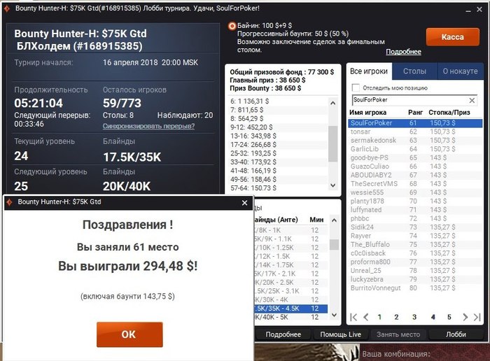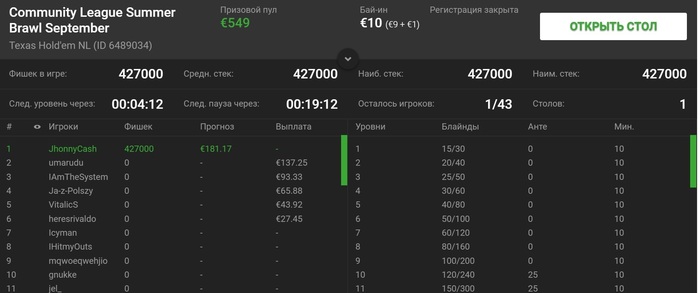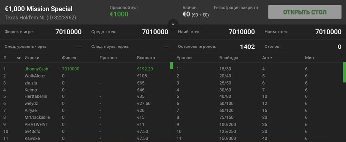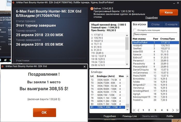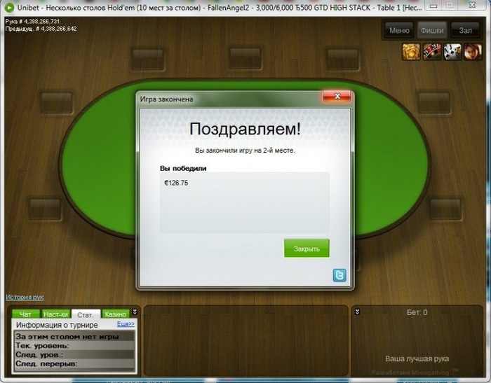 Сразу занял второе место в турнире на 130 человек за 5 евро