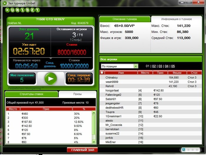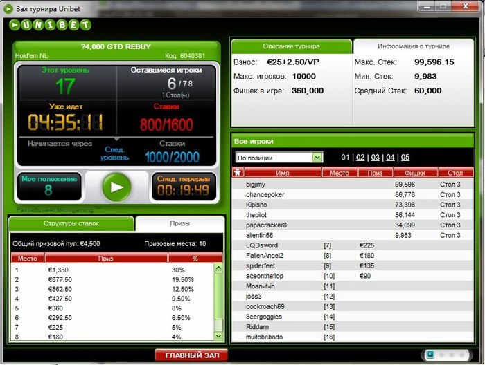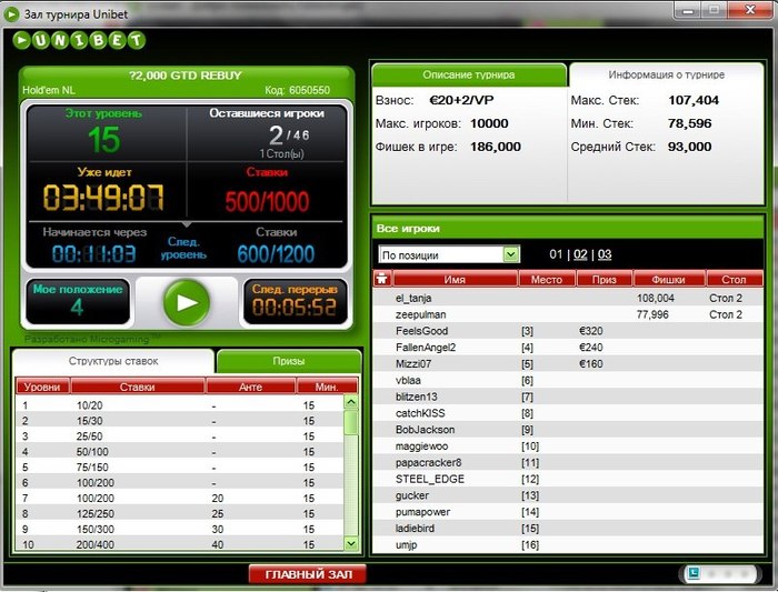 Юнибет: +200 $ (около 1000 турниров)