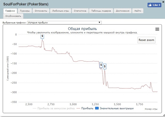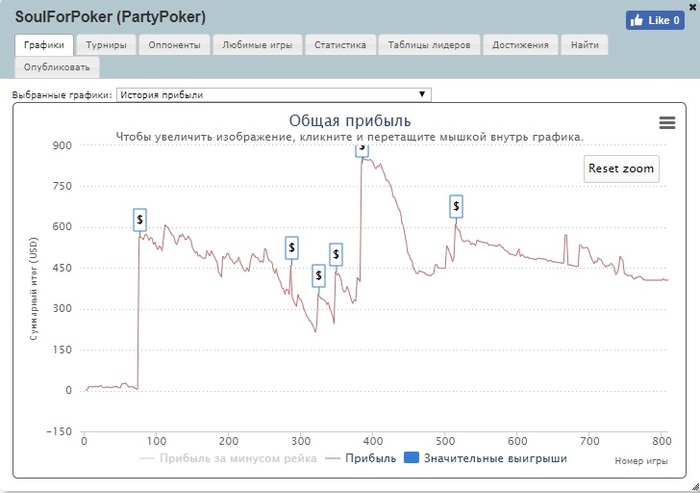 Я, мягко говоря, играл не по банкроллу Спустя 4-5 дней с момента депа на счету было примерно 600 долларов Сделал кэшаут на 200 долларов, а потом... Душа лудомана велела немедленно регнуться в недельный турнир 100 К гарант за 200 евро, местный аналог сандей миллиона До начала турнира я умудрился уснуть (sic !) , а проснулся уже супершортом и пришлось с чем то типа KQ коллировать мультиолын (неудачно в итоге) Дальше тильт, кэш и просадка всего банкролла Затем какое-то время я играл в лайтовом режиме, отыгрывая всего несколько десятков турниров в месяц и стабильно проигрывая каждый же месяц 1-2 депозита по 10 долларов. Бывало, что время от времени начинал серьёзно катать, но потом желание так же быстро пропадало. В 2013 году был большой перерыв, несколько месяцев вообще не играл и совсем забыл про покер