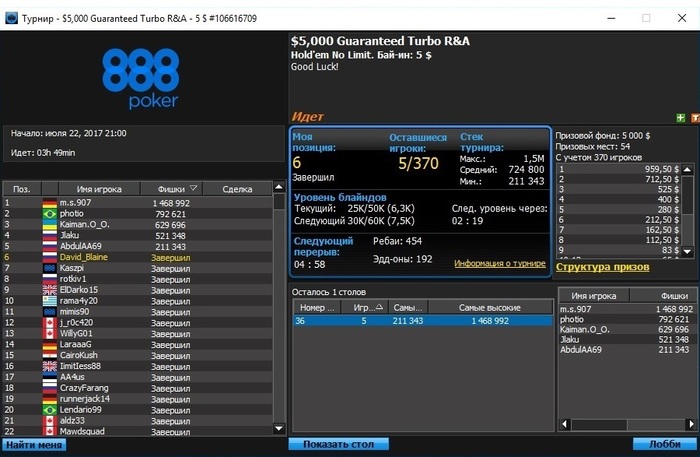 888: минус 96,77 $ (530 турниров)