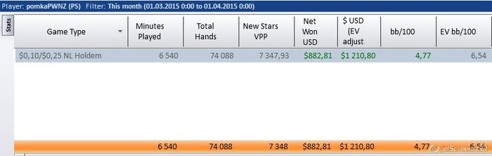 Занимался с Сергеем курс. Все очень понравилось, доходчиво. Были пояснены методики, элементы стратегии, даны векторы для дальнейшего развития в игре. Результатами доволен, заработано около 12к, с учетом рейкбека. Поднялся с нл25 до зум100 в краткие сроки. Вот результаты, не хватает еще 35-40к рук с нл25, к сожалению нету всей базы, но на результат они повлияют в лучшую сторону: