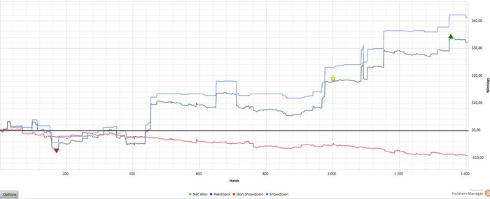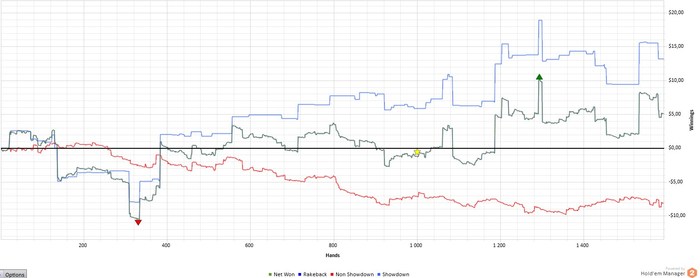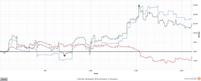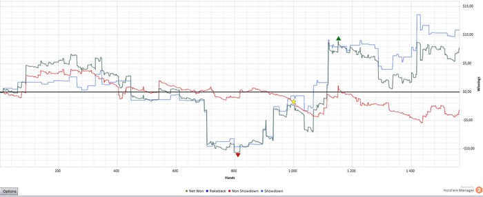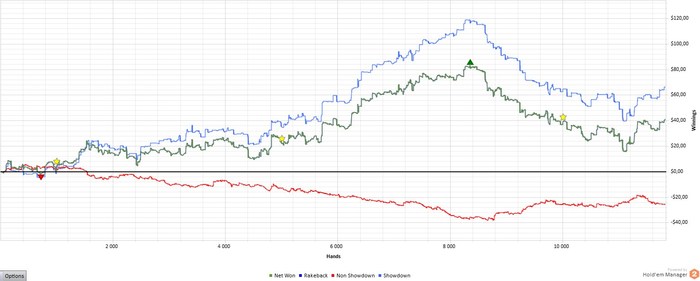 Думаю можно подвести некий итог первой недели. Сыграть получилось около 12к рук, с учетом пропуска 2 или 3 дней. Вчера игра совершенно не складывалась, начал тильтовать и залил около 10ти байинов лимита. Теперь нужно отыгрывать В общем недельный график вот: