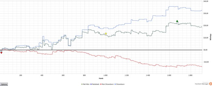 График 2ух прошедших "сессий", если их таковыми можно назвать, наигрывая 1к рук за каждую: