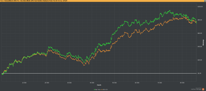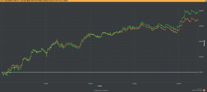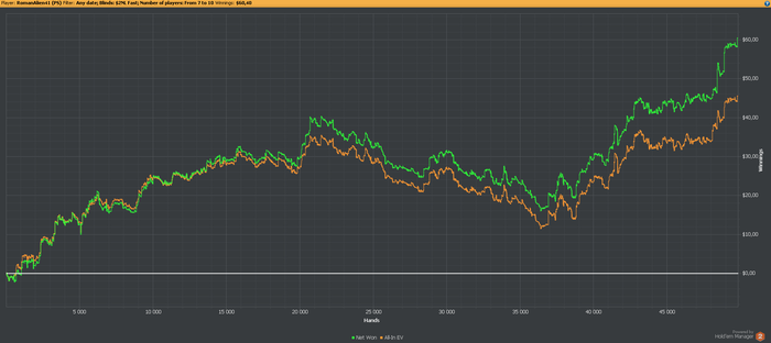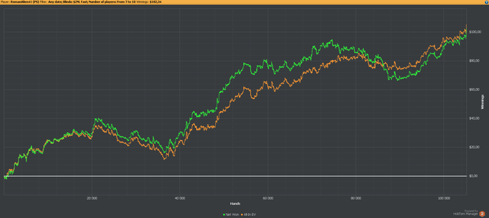 На данный момент если бить нл2 примерно с 10бб/100, то в месяц будет выходить 100-150$, что пока далеко от изначальной цели. Еще работать и работать...