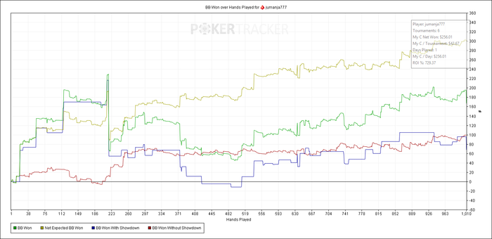 Но суть не в этом. Пока играл этот тур, чтоб не умереть со скуки, подгрузил пару микротуров. Отыграл на конкретном гадмоде, даже не смотря, что в одном из туров в самом начеле сдали КК в АА и я успешно засадил 160бб