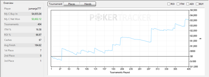 Этим неблагодарным делом более менее серьезно занимаюсь около 3 лет. Начинал, как многие, с фриролов и дешевых снгшек в свободное время. Заинтересовался, начал смотреть ВОДы, прочел пару книжек по теории и математике покера. Ну и дело пошло понемногу в гору.