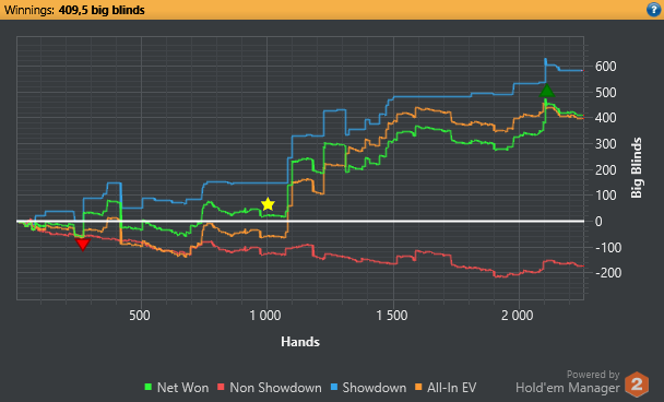 Из теории читаю статьи Жана http://www.pokeroff.ru/prostota-huzhe-vorovstva-post-2897524 , немного поменяли парадигму, теперь играю меньше столов.И задумываюсь перед каждым действием, зачем я его делаю,даже над самыми простыми. Иногда ловлю себя на мысли, что хочу выбить руку слабее, чтобы ему ни в коем случае его 3 аута не доехали. + благодаря статьям нашёл несколько других ликов в своей игре. Подумываю взять тренера, да вот только подходящего сложно найти. За $50 в час дорого, а дешевле, на уровне $10 найти не могу. На март план играть регспиды 0,25 + фрироллы, набивать БР до 100. Плотно работать над теорией и разбором рук. Возможно, для улучшения постфлопа, ещё недельку поиграю кеш =)