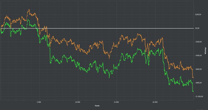 Немного о себе: в покер играю с 2010 года, пик бы в 2012 когда играл и бил нл100, затем последовал вывод 9/10 бр на покупку авто( думаю это главная ошибка в жизни). навалились проблемы, понадобились деньги в итоге еще пол года я крутился на лимитах нл10-50 с постоянными кэшаутами в существенную часть бр. Итог этому - я пошел работать и забросил катку на какое то время вовсе. В данный момент играю зум нл50 и работаю на обычной работе за 400$ в месяц.