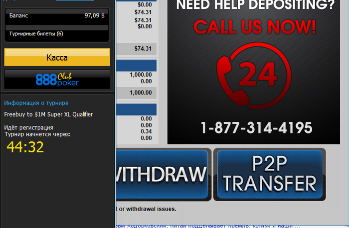 на 888 опустился до 77уе.. кидало туда-сюда.в итоге остановился на этой сумме пока что на америкосах даже довелось пару мелких туриков занести и подняться до 57уе(смешные призы,но =..именно для этого я и начал тут эту писанину ведь)