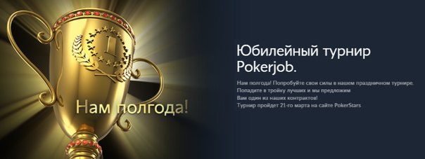 Проекту PokerJob исполняется полгода! За это время мы шагнули далеко вперед, и продолжаем активно развиваться. Десятки людей уже получили контракты от нашего проекта на общую сумму около четверти миллиона долларов. Мы хотим отпраздновать этот небольшой рубеж, и проводим юбилейный турнир в котором разыграем 4500 долл.