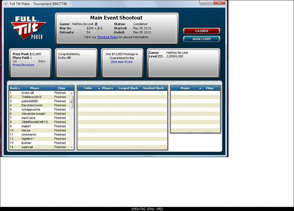 | Сообщение от SASHEN_KA (http://forum.cgm.ru/mnogostolovye_turniry/125392-kolodec_zaya-38.html#post693445) Написал этот вопрос под впечатлением "гениальной" Full Tilt No-Limit Hold'em Tournament, 10/20 Blinds (9 handed) - Hero's M: 100.00 Preflop: Hero is Button with K , 6![]() UTG bets t60, 3 folds, MP3 calls t60, CO raises to t370, 3 folds, UTG raises to t960, 1 fold, CO calls t590 Flop: (t2010) 7 , 8 , 5 (2 players)UTG bets t1780 (All-In), CO calls t1780 UTG shows [Kh Ac] CO shows [Ah Kc] Turn: (t5570) A (2 players, 1 all-in)River: (t5570) 2 (2 players, 1 all-in)Total pot: t5570 И это не единичный подобный случай, подобное переодически можно наблюдать практически на всех лимитах, сам знаешь. Какой то мозгоправ внушил "99%" покерных игроков то что АК это меганатсище а если они еще и мастевые, то вообще пиз...ц, нужно продать квартиру и поставить на кон, ... когда проиграешь. Заметил ли ты что переоценка АК в последнее время это уже тенденция...? |