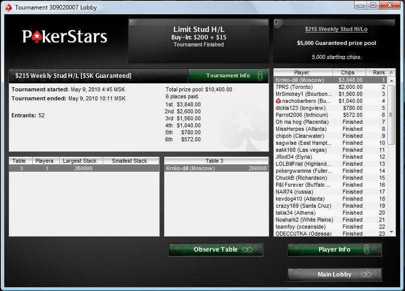 (straight, Ace high).| Сообщение от MacTepTpynoB (http://forum.cgm.ru/mnogostolovye_turniry/125392-kolodec_zaya-67.html#post1138931) Андрей, ты уже как Джипси заныл. Прекращай про переезды Увидишь, настрой очень быстро поменяется. А с ним и результат Я проверял, работает P.S. кто ноет - того бэкеры не берут |